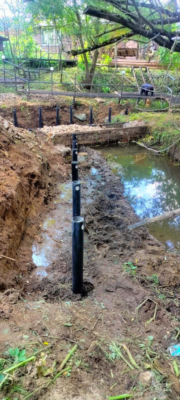 1. Предварительное обследование участка — перед началом работ мы тщательно изучили особенности рельефа и состояние грунта, чтобы определить оптимальное количество и расположение свай.